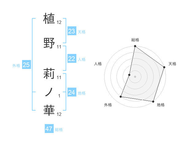 植野 莉ノ華さんを姓名の画数から五運を鑑定