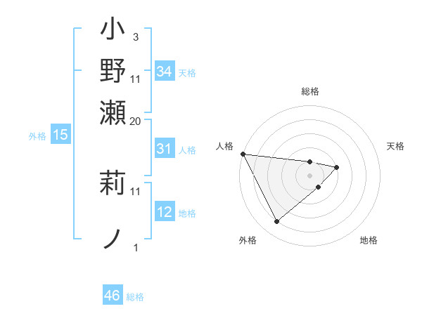小野瀬 莉ノさんを姓名の画数から五運を鑑定