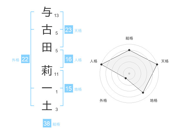 与古田 莉一土さんを姓名の画数から五運を鑑定