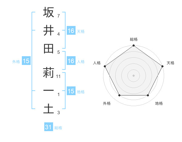 坂井田 莉一土さんを姓名の画数から五運を鑑定