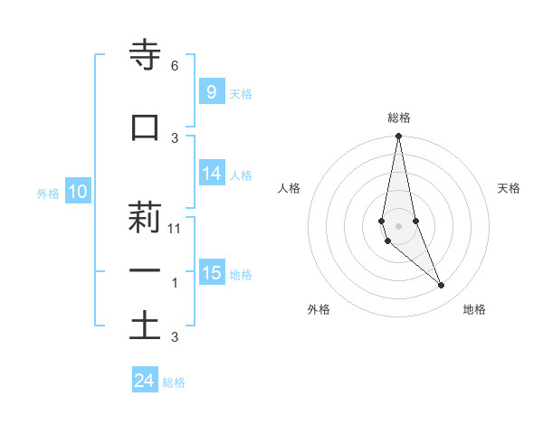 寺口 莉一土さんを姓名の画数から五運を鑑定