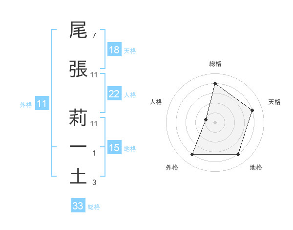 尾張 莉一土さんを姓名の画数から五運を鑑定