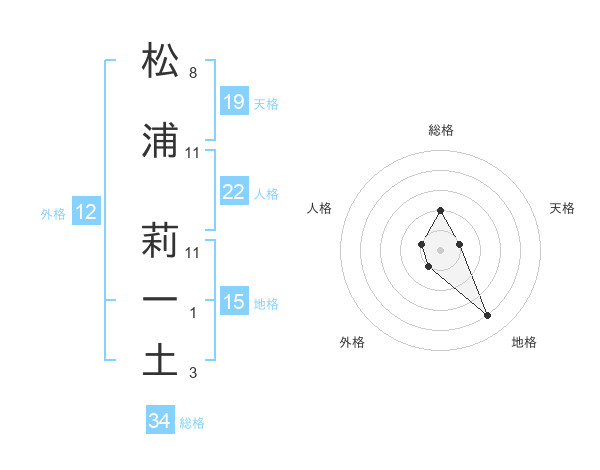 松浦 莉一土さんを姓名の画数から五運を鑑定