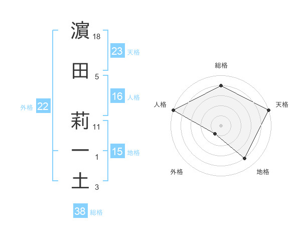 濵田 莉一土さんを姓名の画数から五運を鑑定
