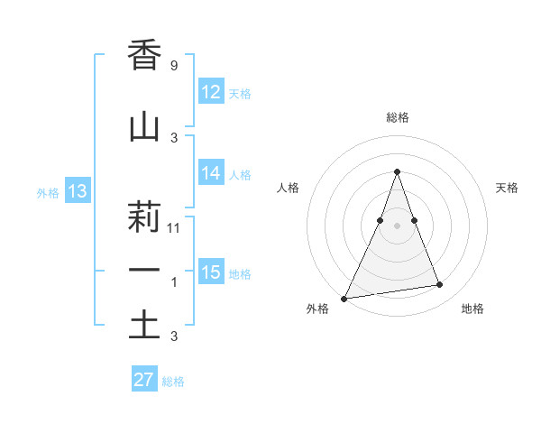 香山 莉一土さんを姓名の画数から五運を鑑定