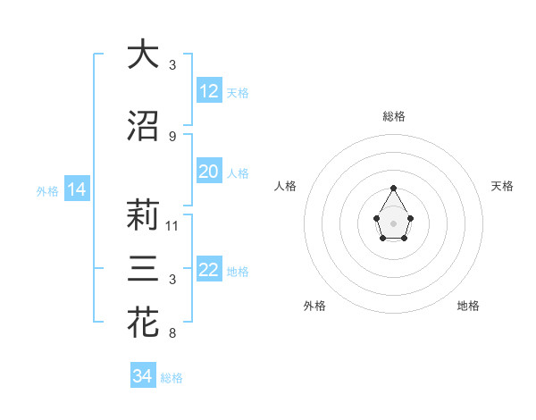 大沼 莉三花さんを姓名の画数から五運を鑑定
