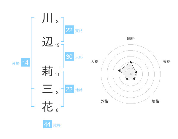 川辺 莉三花さんの総格は44画の2点!