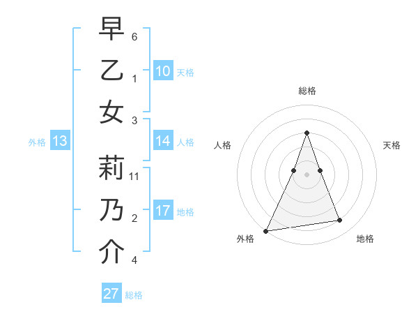 早乙女 莉乃介さんを姓名の画数から五運を鑑定