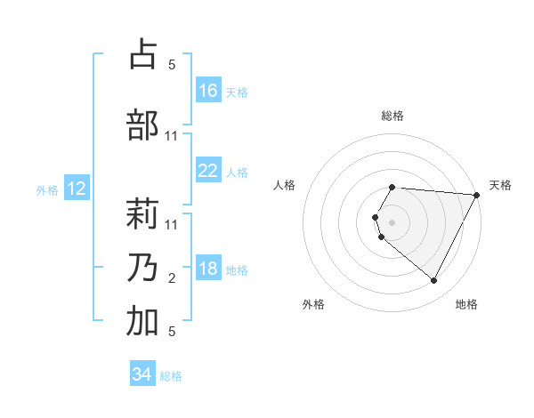 占部 莉乃加さんを姓名の画数から五運を鑑定