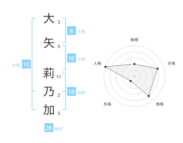 大矢 莉乃加さんを姓名の画数から五運を鑑定