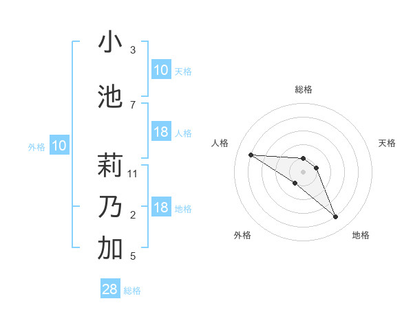 小池 莉乃加さんを姓名の画数から五運を鑑定
