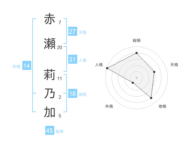 赤瀬 莉乃加さんを姓名の画数から五運を鑑定