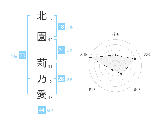 北園 莉乃愛さんを姓名の画数から五運を鑑定