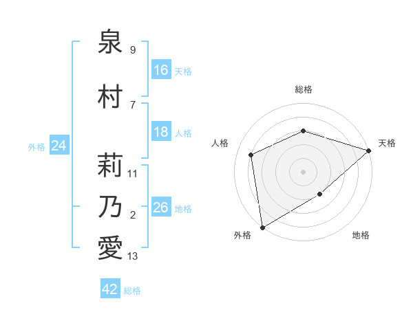 泉村 莉乃愛さんを姓名の画数から五運を鑑定