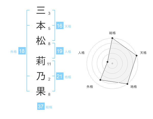 三本松 莉乃果さんの総格は37画の5点!