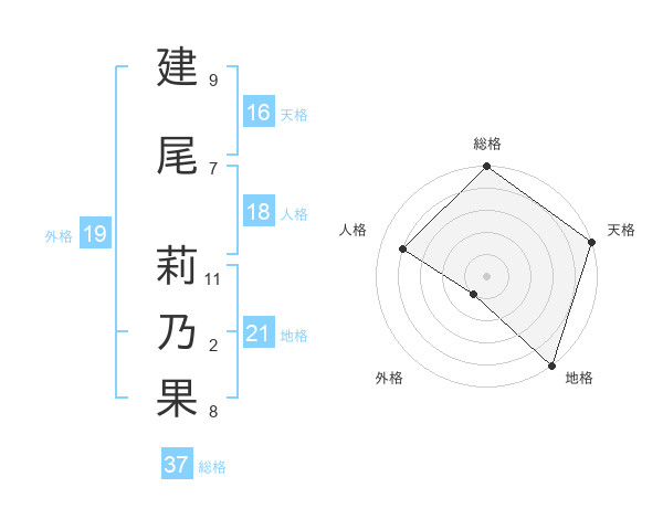 建尾 莉乃果さんの総格は37画の5点!