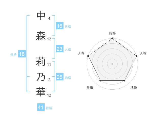 中森 莉乃華さんを姓名の画数から五運を鑑定