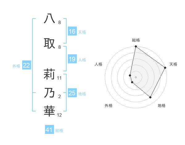 八取 莉乃華さんの天格は16画の5点!