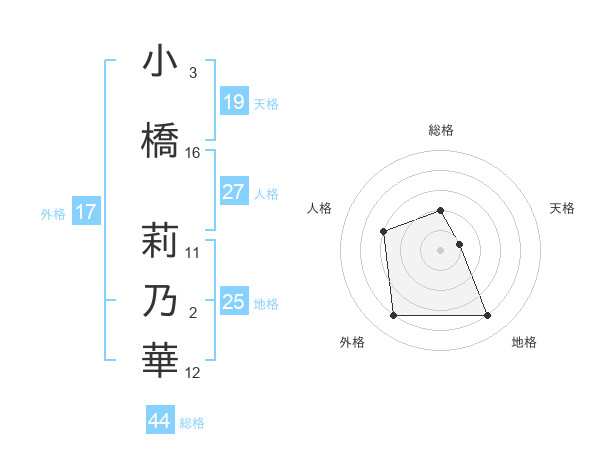 小橋 莉乃華さんを姓名の画数から五運を鑑定