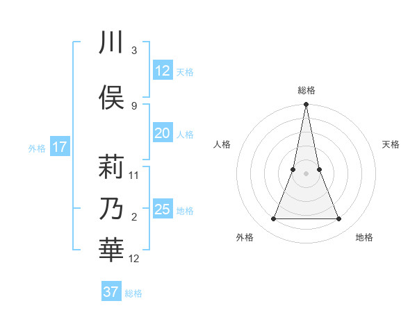 川俣 莉乃華さんの総格は37画の5点