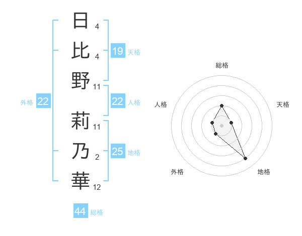 日比野 莉乃華さんの総格は44画の2点!