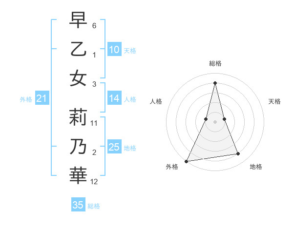 早乙女 莉乃華さんを姓名の画数から五運を鑑定