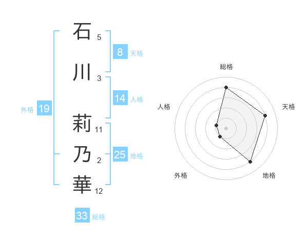 石川 莉乃華さんを姓名の画数から五運を鑑定