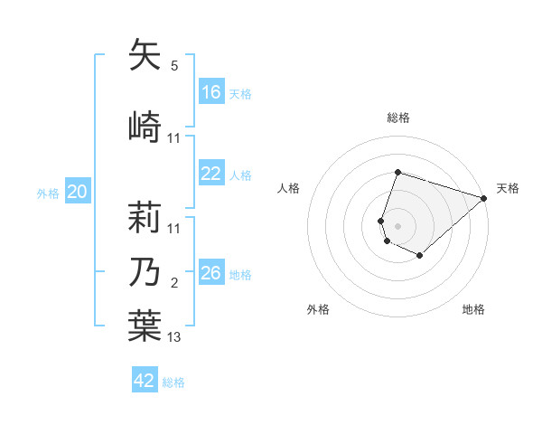 矢崎 莉乃葉さんの天格は16画の5点!