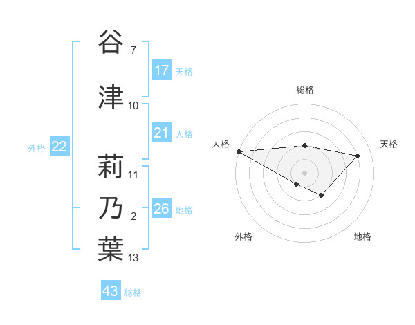 谷津 莉乃葉さんの天格は17画の4点!