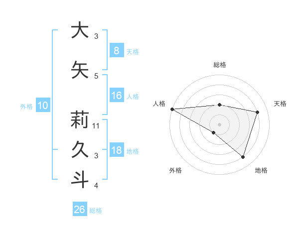 大矢 莉久斗さんを姓名の画数から五運を鑑定