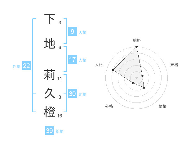 下地 莉久橙さんの総格は39画の5点