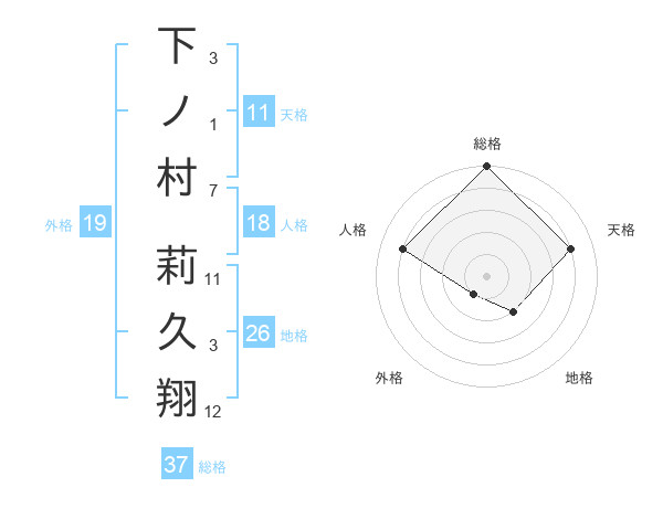 下ノ村 莉久翔さんを姓名の画数から五運を鑑定
