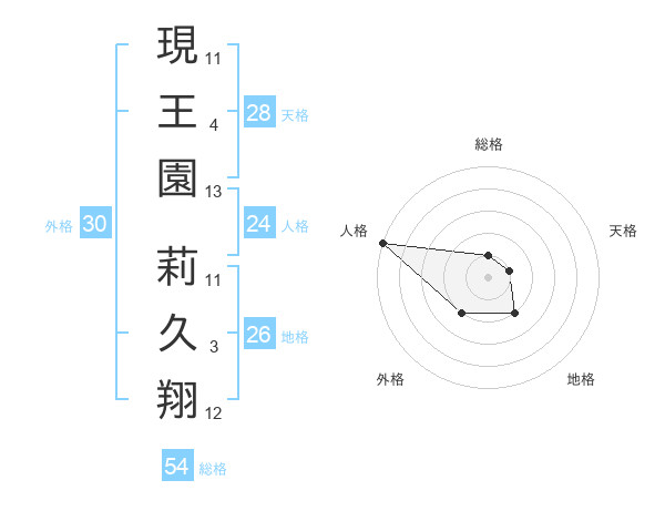 現王園 莉久翔さんの総格は54画の1点!