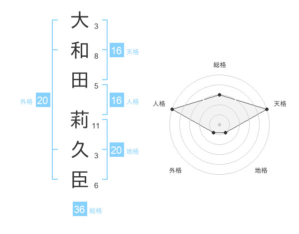 大和田 莉久臣さんの天格は16画の5点!