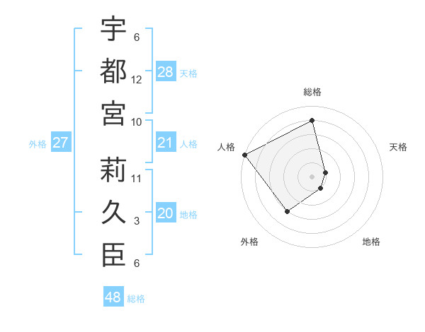 宇都宮 莉久臣さんを姓名の画数から五運を鑑定