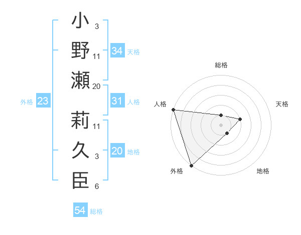 小野瀬 莉久臣さんを姓名の画数から五運を鑑定