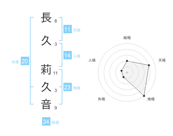 長久 莉久音さんを姓名の画数から五運を鑑定