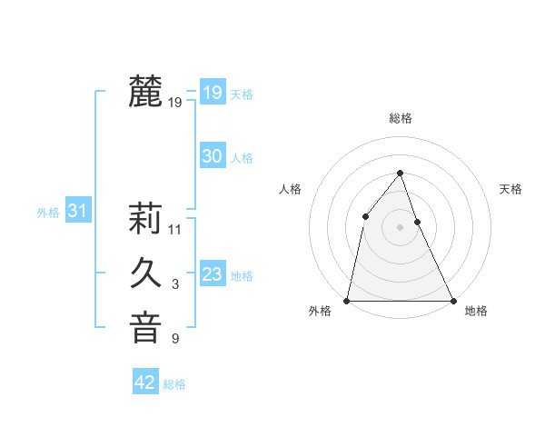 麓 莉久音さんを姓名の画数から五運を鑑定