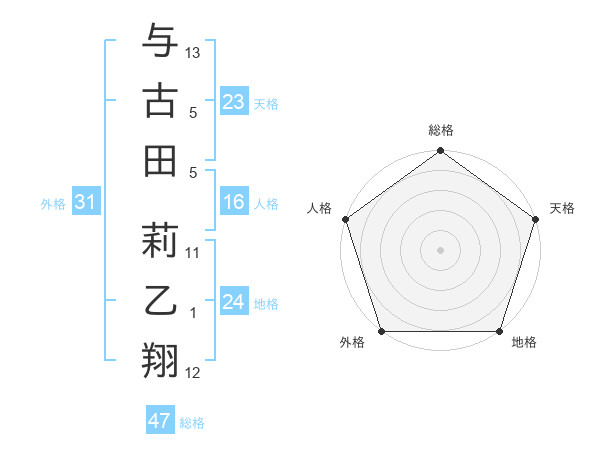 与古田 莉乙翔さんを姓名の画数から五運を鑑定