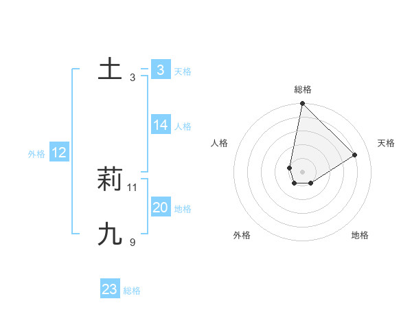 土 莉九さんの総格は23画の5点!