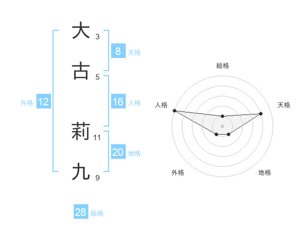 大古 莉九さんの天格は8画の4点!
