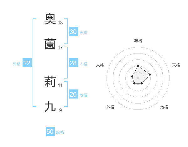 奥薗 莉九さんを姓名の画数から五運を鑑定