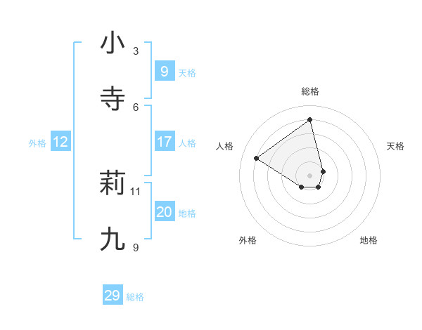 小寺 莉九さんの総格は29画の4点
