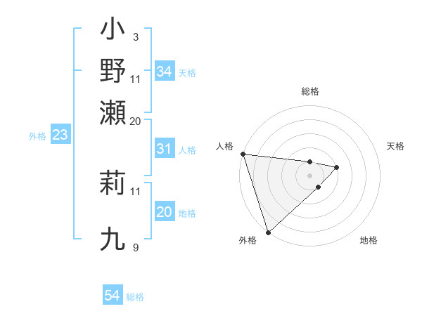 小野瀬 莉九さんを姓名の画数から五運を鑑定