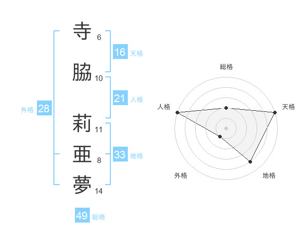 寺脇 莉亜夢さんの天格は16画の5点!