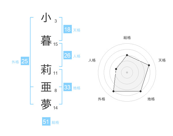 小暮 莉亜夢さんを姓名の画数から五運を鑑定