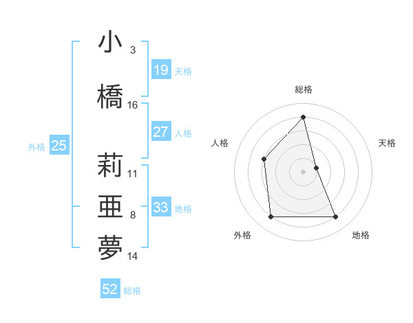 小橋 莉亜夢さんの総格は52画の4点!
