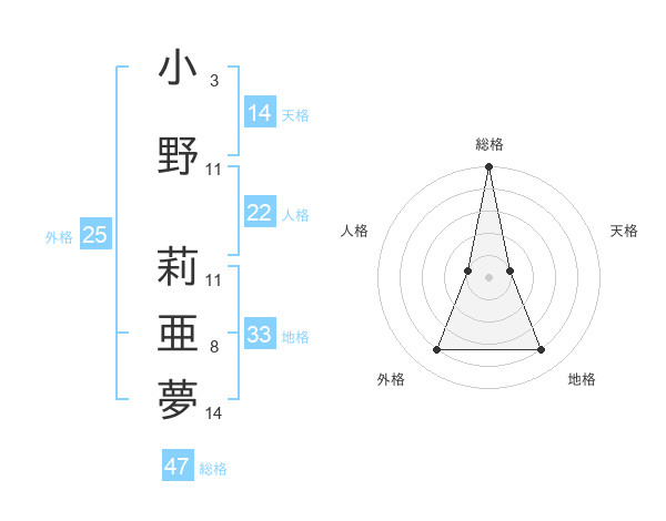 小野 莉亜夢さんを姓名の画数から五運を鑑定