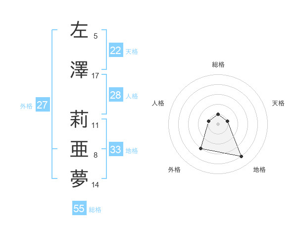 左澤 莉亜夢さんを姓名の画数から五運を鑑定