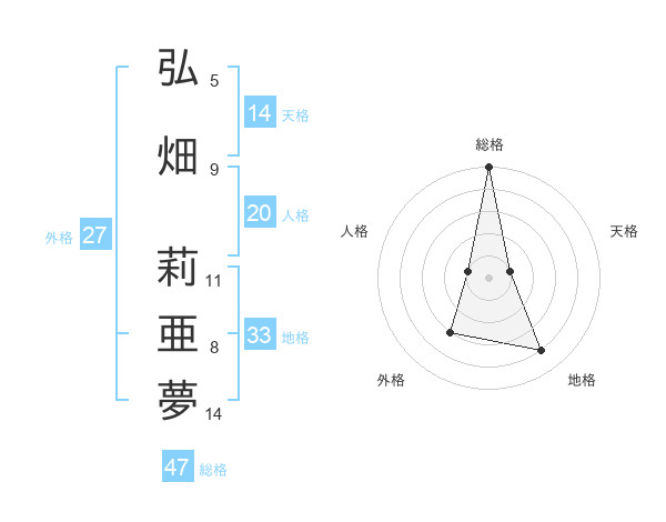 弘畑 莉亜夢さんを姓名の画数から五運を鑑定